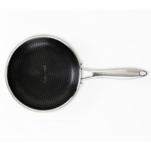 - Cooks like stainless steel with the benefits of non-stick cleanup; metal utensil safe-won’t scratch or alter the cooking surface